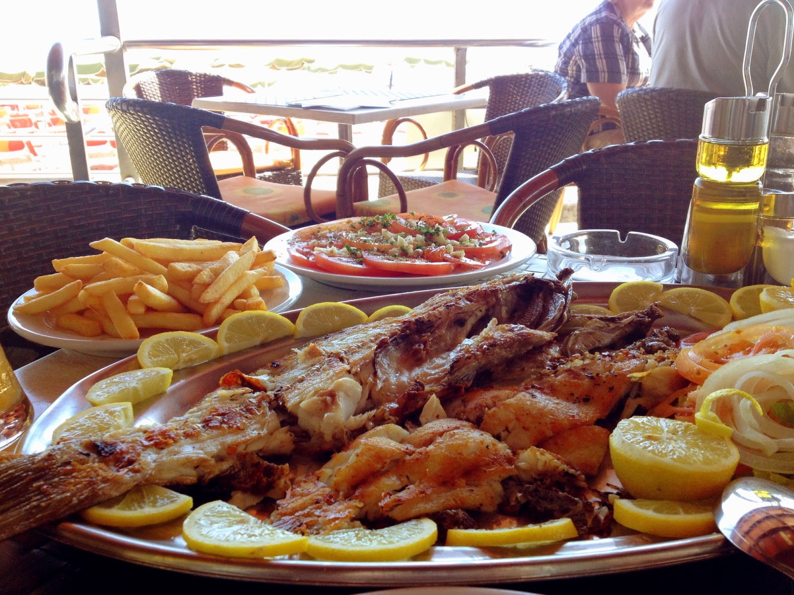 Mutta kun levitimme pyyhkeet, aurinko alkoi paistaa, ja kaivoimme oitis laukuistamme marketista hankkimamme pienet Codorniu Benjamin -cavat, Siitä se rantapäivä taas sukeutui. ”Marc vaihtui Benjaminiin”, Miss Mbmj virnisteli. Päivän paras ylläri oli rantakuppila Boccalinon lounas. Harkitsimme jo jotain fiinimpää mutta koska terassi oli täynnä syöjiä, päätimme valita läheisen ja nopean. Onneksi valitsimme! ”Fresh fish of the day” -taktiikkamme toimi, ja saimme superherkullisen kokonaisena paistetun kalan kaikkine tilpehööreineen. Njam! Tarjoilija – liekö ollut omistajapappa – toi Erdingeriä jäähdytetyissä tuopeissa ja vitsaili sekä vinkkaili silmää söpösti. Ihana paikka. Ajattelin kirjoittaa TripAdvisoriin jotain mukavaa, mutta ei tämä mesta ole edes siellä.