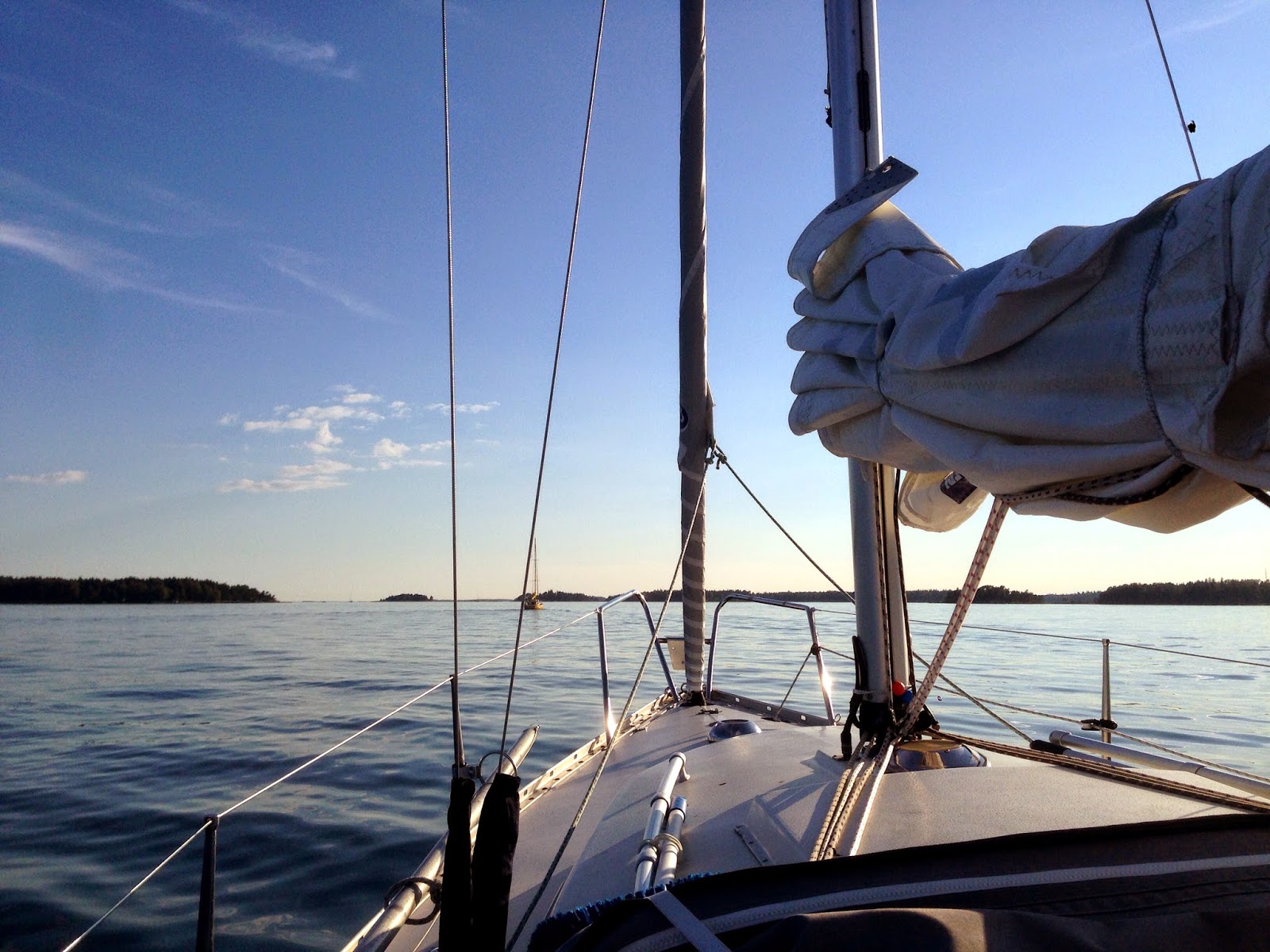Translation: Sailing with our friends in Suvisaaristo (Sommarö) near Espoo, Finland.